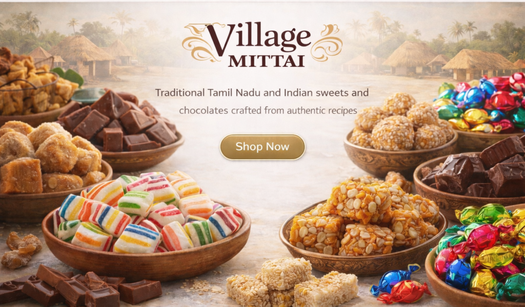 SHOP BY CATEGORY Traditional sweets chocolates Our Products Add to compare Gulab Jamun 12pcs village mittai ₹80.00 Add to wishlist Add to cart Quick view Add to compare Macroons 50g village mittai ₹75.00 Add to wishlist Add to cart Quick view Add to compare Nellai Ghee Halwa 250g village mittai ₹90.00 Add to wishlist Add to cart Quick view Add to compare Osmania cookies 18pcs village mittai ₹75.00 Add to wishlist Add to cart Quick view Add to compare Rasakullah 8pcs village mittai ₹90.00 Add to wishlist Add to cart Quick view
